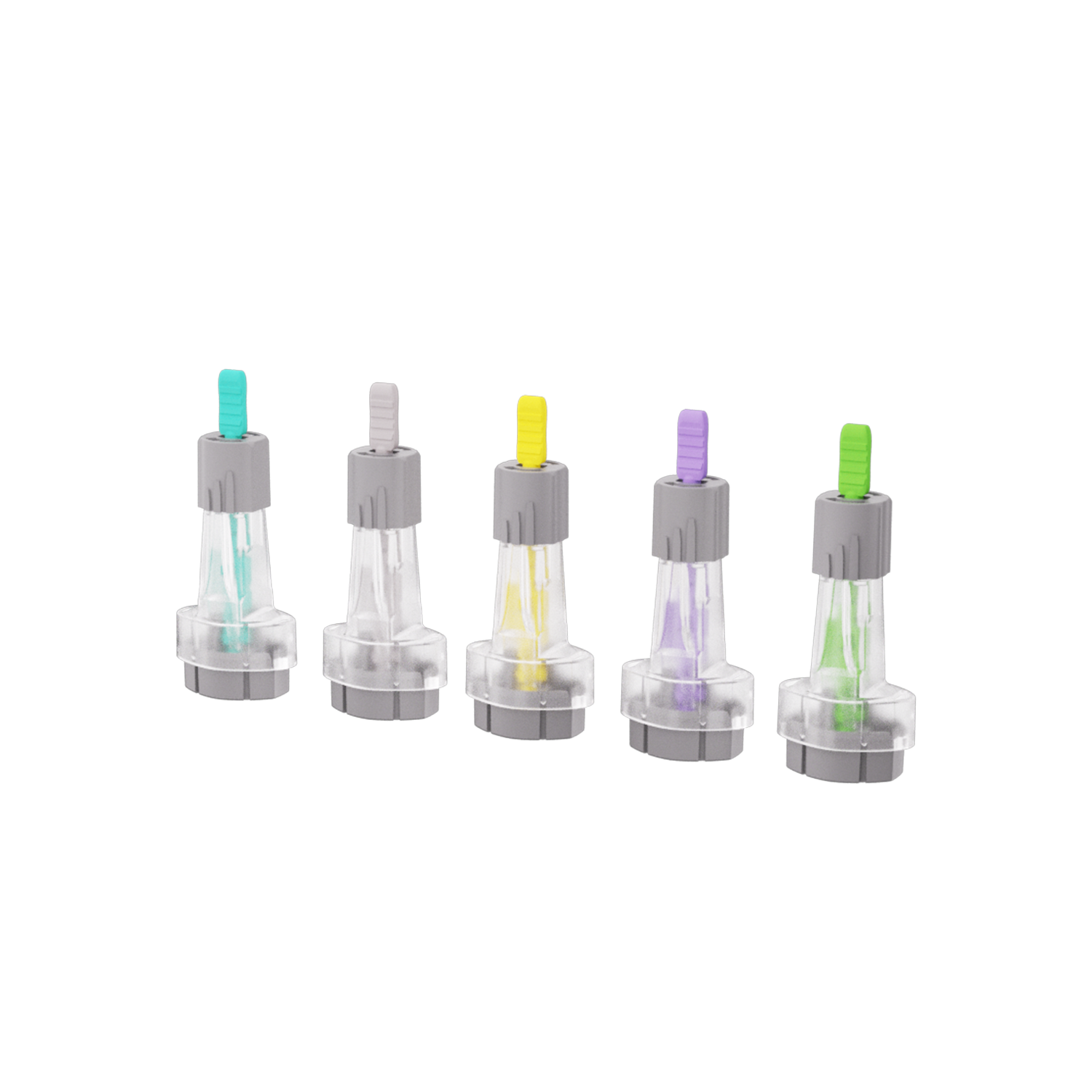 筒形采血筆OneStep型一步裝針,無需卸帽。 筒形采血筆OneStep型專配SoftSense型采血針,不通配市面上其他款式采血針。